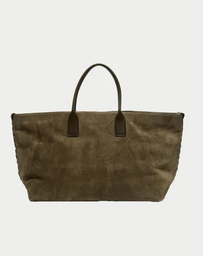 Grand cabas en Velours de Cuir kaki - 33x45x20 cm