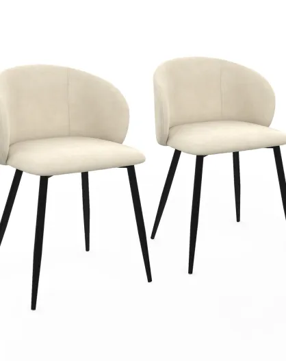 2 Chaises Léona en velours et pieds métal crème - 51x53x71 cm
