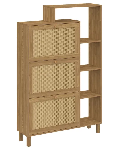 Meuble à chaussures Erin 3 portes en cannage 18 paires bois - 86.5x23.5x133.5 cm