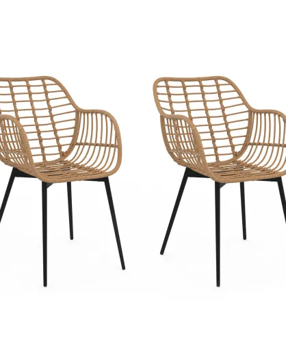 2 Fauteuils Cuba effet rotin et pieds métal imitation rotin - 51x60x80 cm