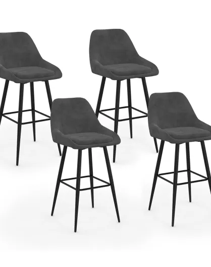 4 Tabourets de bar Olivia en Velours et pieds métal gris foncé - 44x46x92? cm