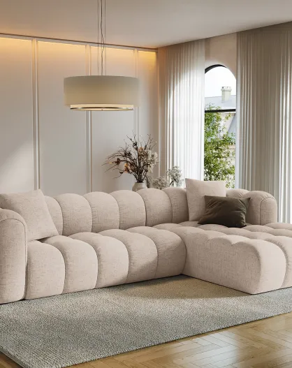 Canapé d'angle Droit Lola 6 Places beige - 315x250x72 cm