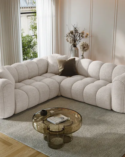 Canapé d'angle Droit Lola 6 Places beige - 315x250x72 cm