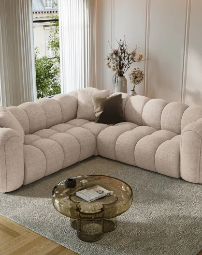 Canapé d'angle Droit Lola 6 Places beige - 315x250x72 cm