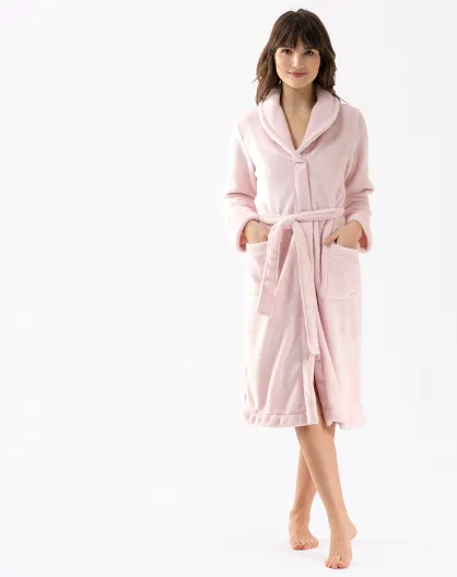 Robe de chambre en peluche flanelle Essentiel bois de rose