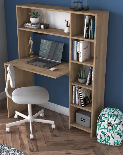 Bureau Vesper blanc/pin - 130x72x50 cm