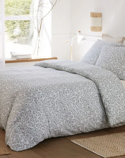 Parure Housse de Couette 100% Gaze de Coton Imprimé Edana grise