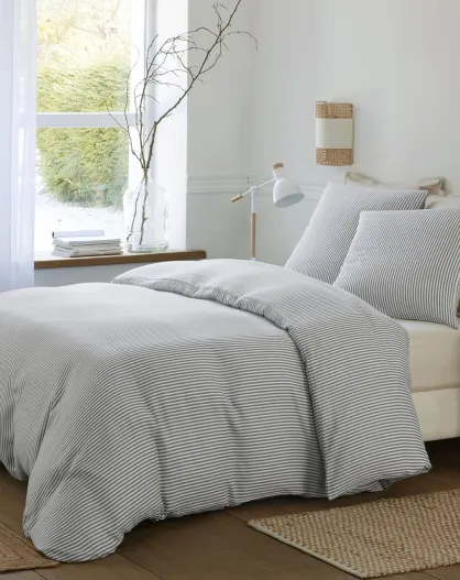 Parure Housse de Couette 100% Gaze de Coton Imprimé Laya blanc/gris