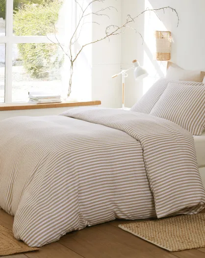 Parure Housse de Couette 100% Gaze de Coton Imprimé Soleïs beige