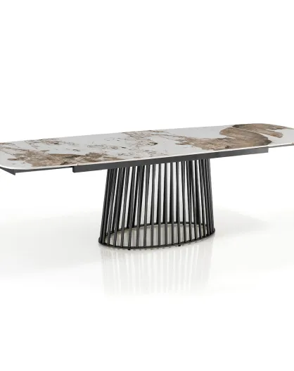 Table à rallonges Cage 2 gris/marbre onyx - 75.5x89x180/220/260 cm