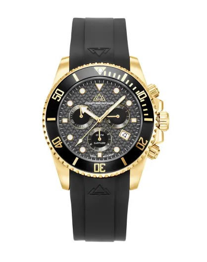 Montre Chronographe Homme en Caoutchouc Marine Chrono Rubber doré/noir