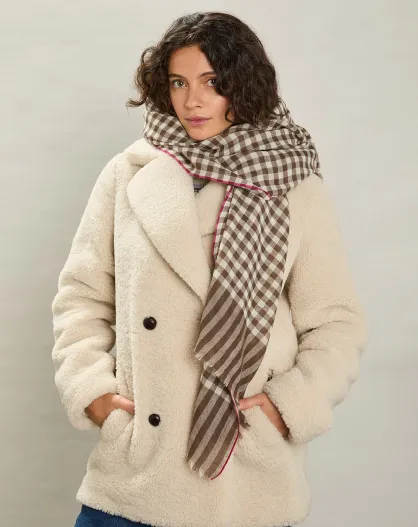 Écharpe 100% Laine Carreaux Vichy brun foncé - 200x70 cm