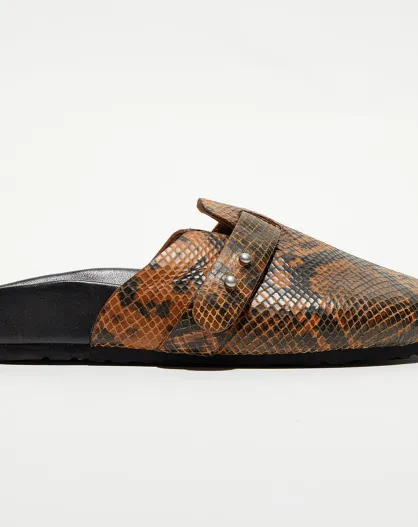 Sabots en Cuir Elvira python brun