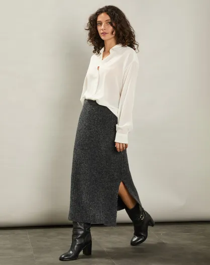 Jupe en Alpaga & Laine mélangés Mea charbon de bois