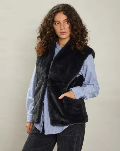 Gilet en Fausse Fourrure Vasco bleu marine foncé