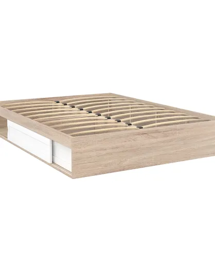 Cadre de lit Orem avec sommier et rangements intégrés bois/porte blanche - 160x200 cm