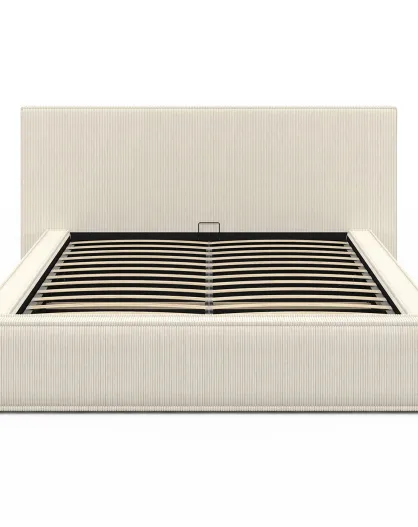 Lit coffre Joyce en velours côtelé avec sommier et tête de lit beige - 160x200 cm