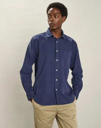 Chemise regular en Velours Milleraies Paul Pat bleu profond