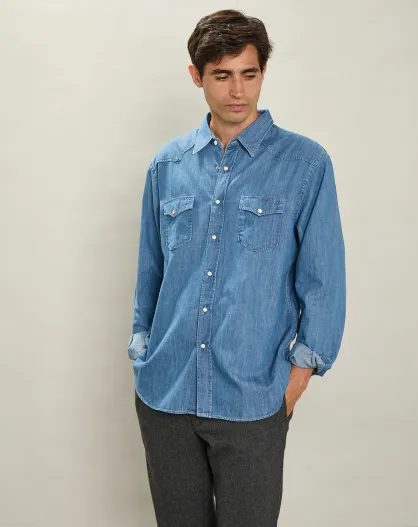 Chemise regular en Velours Milleraies Pitt indigo clair