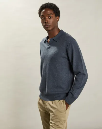 Pull Polo en Laine & Cachemire bleu pétrole