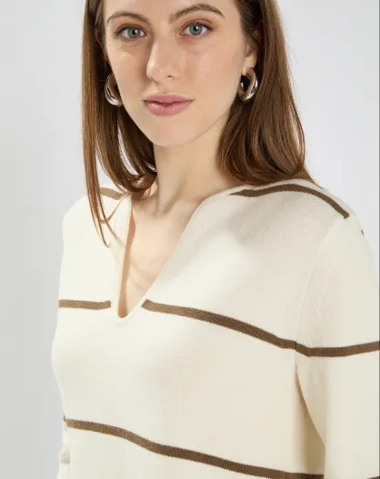 Pull en Laine & Coton Nolyn rayures écru/kaki