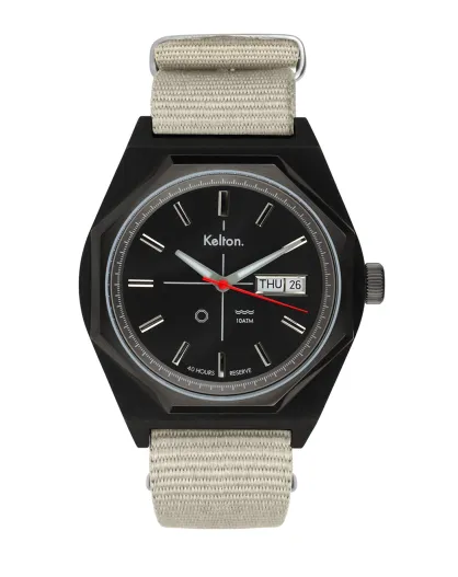 Montre automatique Homme en Tissu Nato Octogone Titane beige