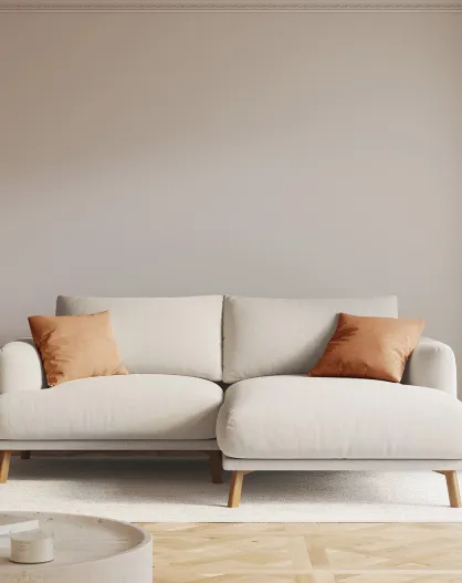 Canapé d'angle droit en Velours Halley 3 places beige clair - 228x175x70 cm