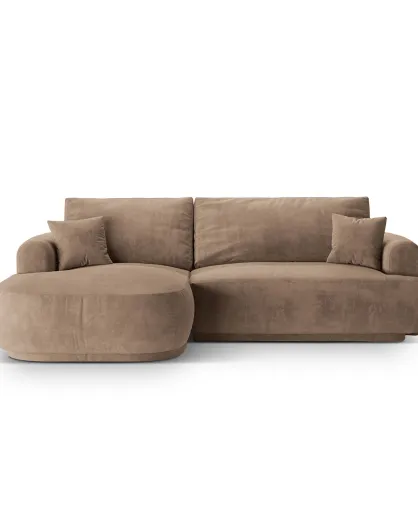 Canapé Angle Gauche Modulable Velours convertible Adriana 5 Places beige foncé - 271x174x94 cm