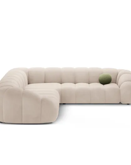 Canapé d'angle en velours Lyna 5 Places beige - 282x282x72 cm