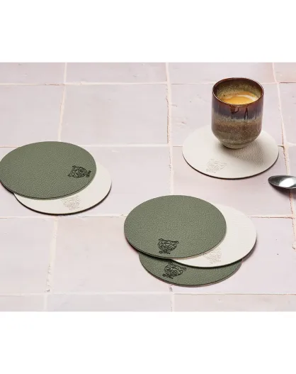 Sous-verre rond réversible crème/vert - 6 pièces