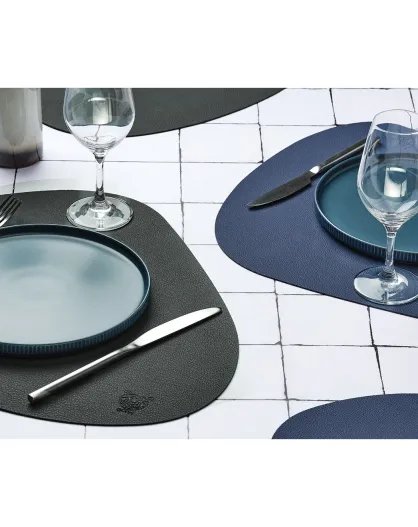 6 Sets de table curve réversible bleu/gris - 44.5x30x0.18 cm