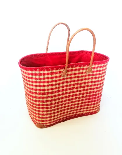 Panier artisanal de plage fibres naturelles rouge - 50x20x35 cm