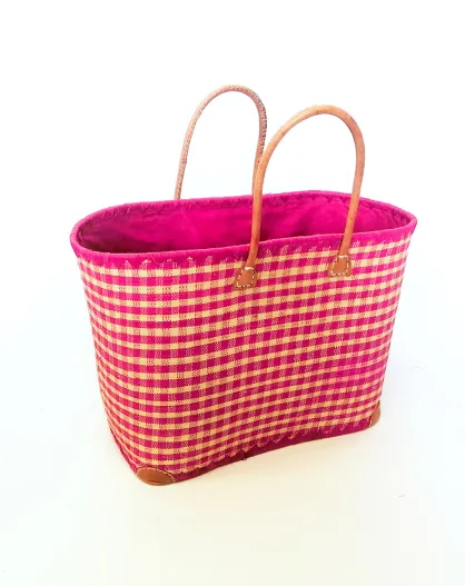Panier artisanal de plage fibres naturelles rose - 50x20x35 cm