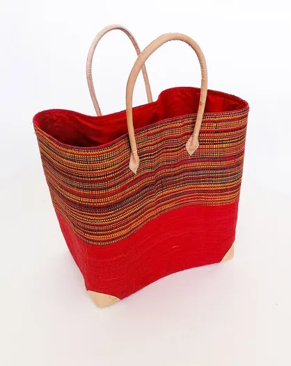 Panier artisanal de plage fibres naturelles rouge - 40x25x40 cm