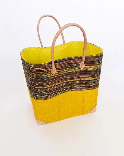 Panier artisanal de plage fibres naturelles jaune - 40x25x40 cm
