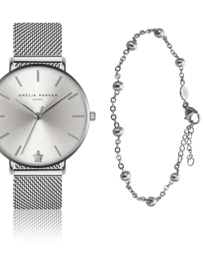 Set Montre Femme & Bracelet Capsule Grey en Acier argenté