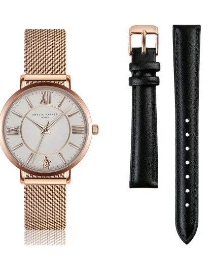 Set Montre Femme 2 Bracelets Petite Classique en Acier & Cuir rose doré/noir