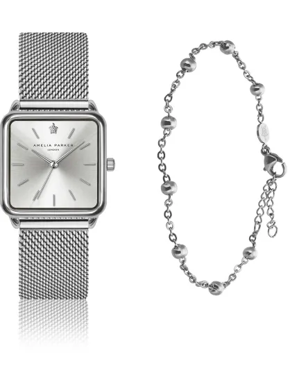Set Montre Femme & Bracelet Plaza en Acier argenté
