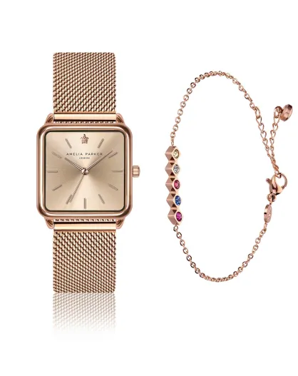 Set Montre Femme & Bracelet Gold Plaza en Acier rose doré