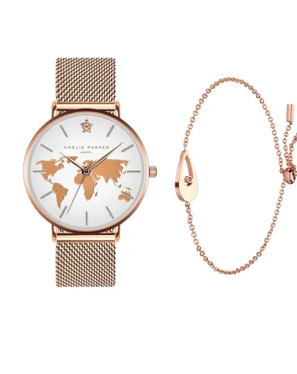 Set Montre Femme & Bracelet Vacation en Acier rose doré