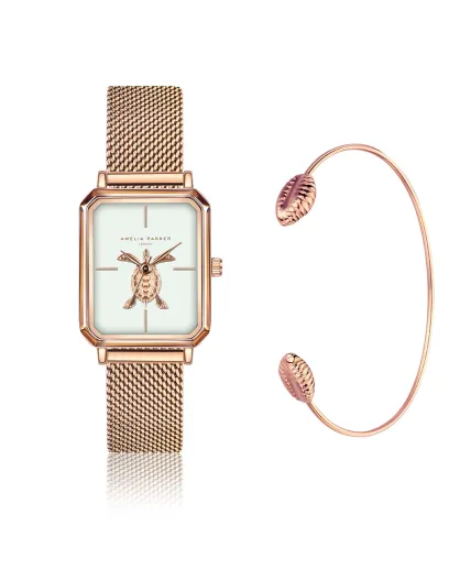 Set Montre Femme & Bracelet Serenity en Acier rose doré