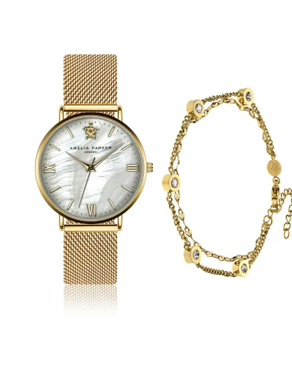 Set Montre Femme & Bracelet Pearl of the Sea en Acier doré