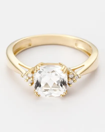 Bague Sérénade Diamants 0.038 ct & Topaze blanche 2.65 ct or jaune