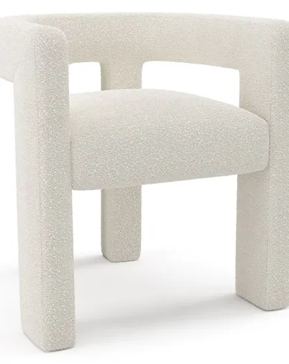 Fauteuil de salle à manger Celia Bouclette crème - 66x55x68 cm