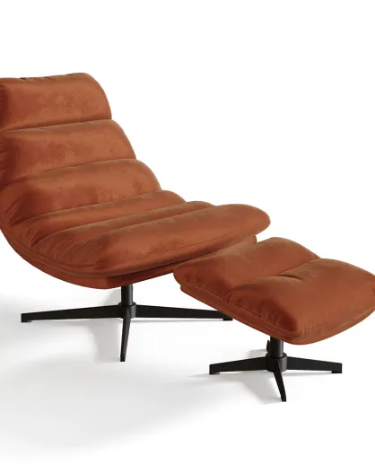 Fauteuil pivotant et repose-pieds Riva Velours terracotta - 82x85x88 cm