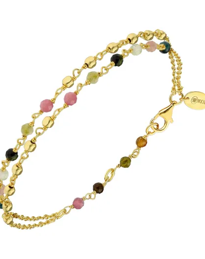 Bracelet doubles chaînes en Argent doré & Tourmaline