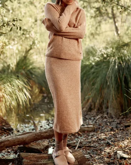 Jupe en Laine & Mohair mélangés Joody camel