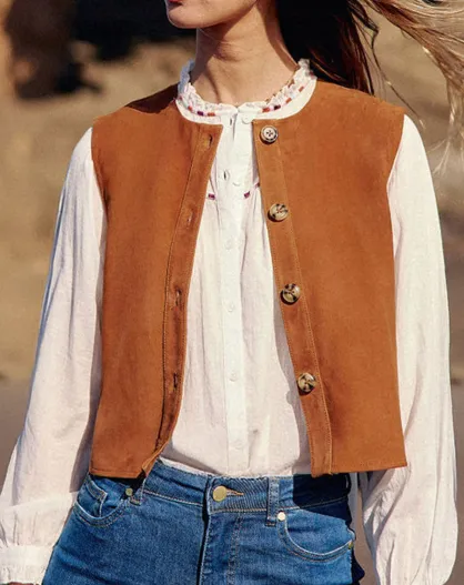 Gilet sans manches en Velours de Cuir Flora sand