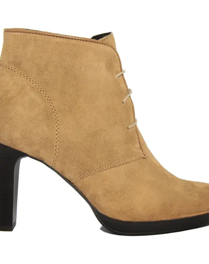 Bottines à talon en Velours de Cuir April camel - Talon 8.5 cm