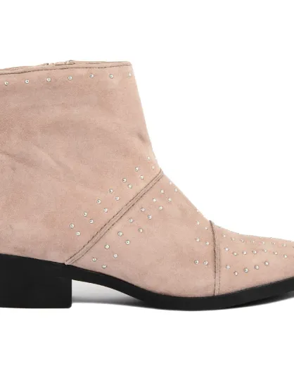 Bottines plates en Velours de Cuir Eleonore beiges